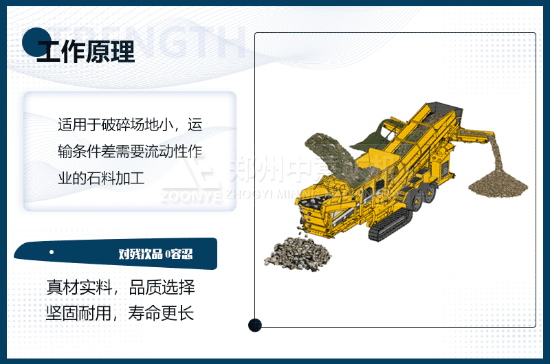 輪胎式立破移動篩分站運(yùn)作當(dāng)中,各項(xiàng)給料、破碎、篩分設(shè)備協(xié)調(diào)工作,原料先進(jìn)入破碎設(shè)備進(jìn)行破碎加工,在此期間骨料被破碎過程當(dāng)中被修整為規(guī)則、通透度很強(qiáng)的顆粒狀再生骨料,制砂之后,進(jìn)入專用篩分機(jī)設(shè)備,后合格的骨料通過出料口排出,未達(dá)到客戶要求的骨料再次進(jìn)入破碎機(jī),從而形成一條閉合回路的效應(yīng)。整個生產(chǎn)過程當(dāng)中,運(yùn)用自驅(qū)行走的移動車身設(shè)計,大大提高了設(shè)備的安全性、有效性以及現(xiàn)場的可隨機(jī)應(yīng)變性能。