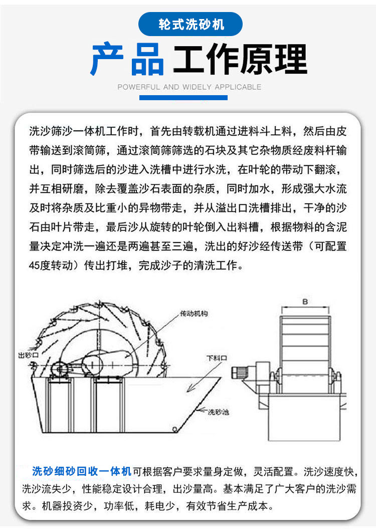 (1)結合洗砂機和細沙回收機的特點優勢,兼具水洗砂、細砂脫水回收功能,比傳統洗砂機清洗物料更干凈,沙子和價格好。