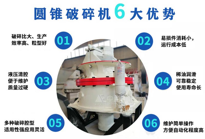 4、粗細(xì)破碎,僅僅更換定錐既可實(shí)現(xiàn)。